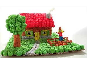 Il funzionamento è semplice: basta inumidire con una spugnetta un pezzetto di Happymais, attaccarlo ad un altro pezzetto, senza bisogno di colla, e comporre qualsiasi figura bidimensionale o tridimensionale. Si possono anche incollare su un cartoncino per creare dei collage oppure strofinare sulla carta come dei gessetti o montare uno sull’altro per costruire castelli, paesaggi, animali e altro ancora… Ma i mattoncini si possono anche tagliare in pezzi più piccoli o addirittura grattuggiare per creare sabbie colorate.