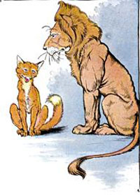Trascorsero un paio di giorni tranquilli dopo quel brutto incontro che sembrava quasi essere stato dimenticato, quando, d’un tratto, la piccola volpe si imbatté ancora nel leone. Questa volta il re della foresta le apparve proprio davanti ostacolandole il cammino. La volpe, impaurita, iniziò a tremare come una foglia senza tuttavia fuggire ma rimanendo ferma al suo posto fino a quando il leone non si fu allontanato. La terza volta che la volpe si imbatté in quel grosso e possente animale dal risonante ruggito, scoprì che il proprio timore nei suoi confronti andava pian piano assopendosi.