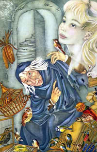 Il terzo invece sentì cantare un usignolo, e siccome gli piaceva tanto camminava per oscure vallate e per fitti boschi, per lagune, per foreste deserte, per luoghi impervi e disabitati, seguendo sempre l’usignolo e le sue melodie. Si innamorò tanto del dolce canto degli uccelli che non pensò più a tornare indietro e rimase ad abitare in quelle foreste.