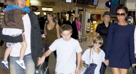 The Beckham family are pictured flying out of Heathrow Airport to Los Angeles. They stopped off at the Hamleys store to buy the children some coloring books and pens.