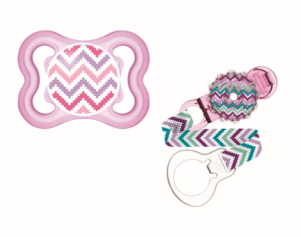 Disponibile con i modelli Mam original e Mam air nelle misure 2-6, 6+ e 16+, ma soprattutto coordinati con la comoda clip salvaciuccio, per fissarlo ai vestiti e trasformarlo a tutti gli effetti in un elemento di abbigliamento, da abbinare a seconda del look.